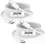 This 2-meter charge cable is made with a woven design — with USB-C connectors on both ends — and is ideal for charging, syncing, and transferring data between USB-C devices. It supports charging of up to 240 watts and transfers data at USB 2 rates. Pair the USB-C Charge Cable with a compatible USB-C power adapter to conveniently charge your devices from a wall outlet and take advantage of fast-charging capabilities. USB-C power adapters sold separately.